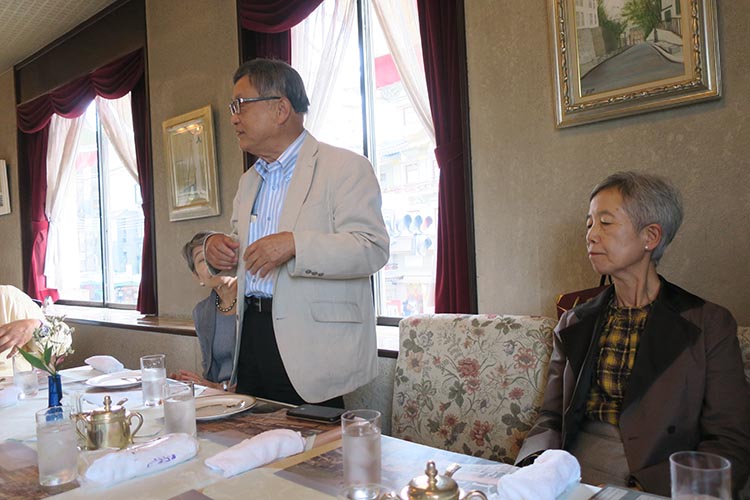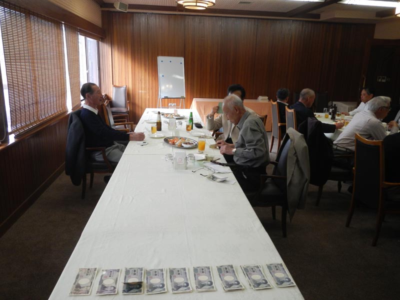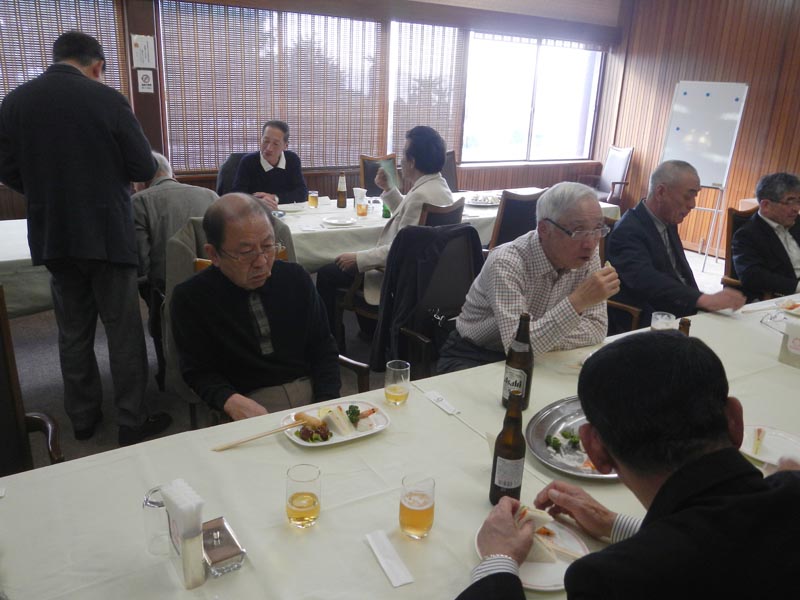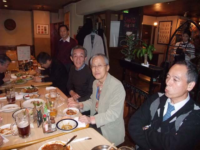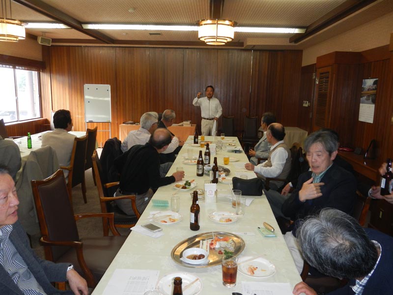 | 15名出席されました。一人毎近況の発表が有り和やかな3時間を過ごしました。各自の近況発表の後、八代君には特別に「日本の経済について」と話をしていただきました。 | ||