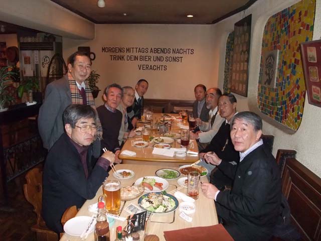 銀座ライオンで開かれました。 斎藤潤子さんの尽力で楽しい集いになりました。 |